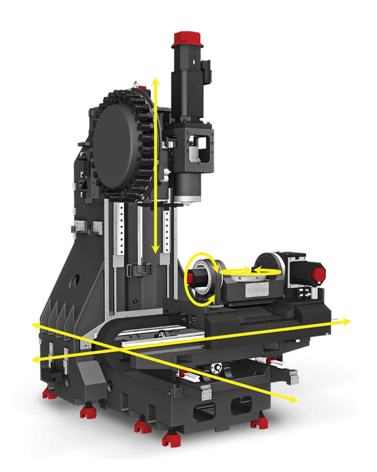 - Stroj je navržen s důrazem na maximální tuhost při zachování kompaktních rozměrů. Masivní základna a optimalizovaná struktura rámu minimalizují vibrace a deformace při náročném třískovém obrábění.