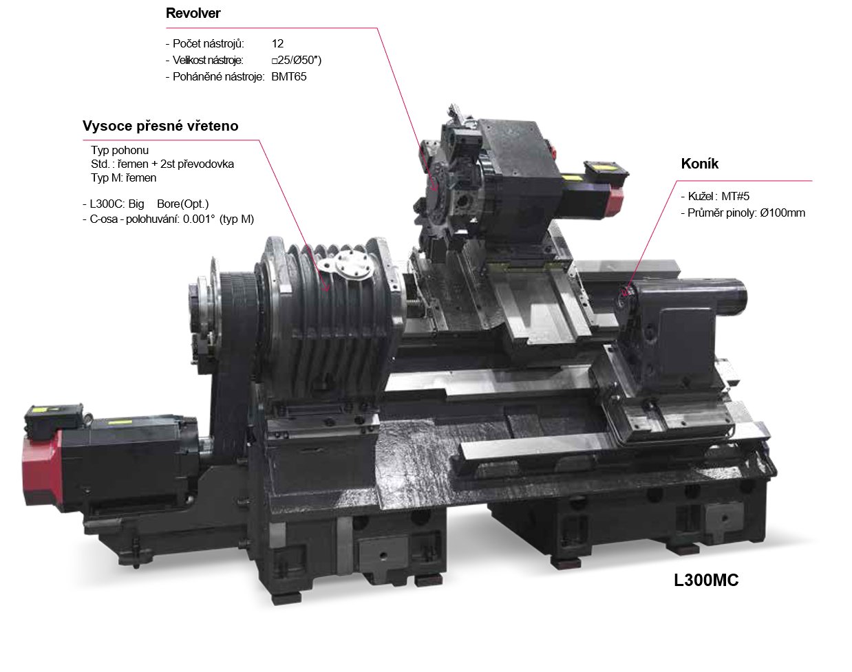 - Největší BMT (12-polohový) revolver ve velikostní třídě strojů L300 série umožňuje jednoduché a přesné polohování. Systém držáků nástrojů BMT65 nabízí velice robustní a přesné upnutí nástroje, což minimalizuje vibrace a zajišťuje vysokou přesnost obrábění, a to i při velkém zatížení. Vysoký výkon (5,5/3,7kW) a krouticí moment (35/23,5N.m) poháněných nástrojů umožňuje provádět plnohodnotné frézovací, vrtací a závitovací operace s vysokou efektivitou.
