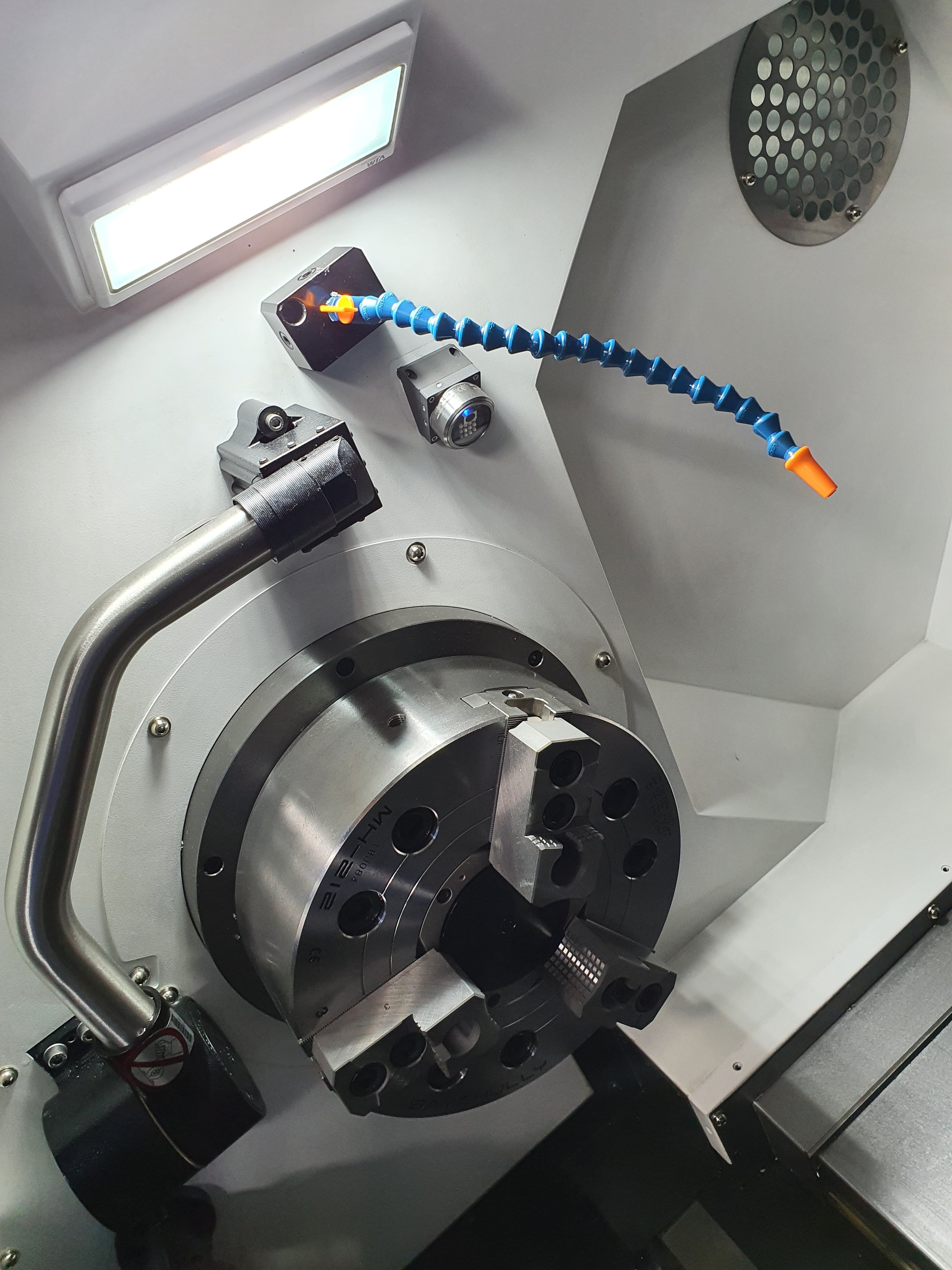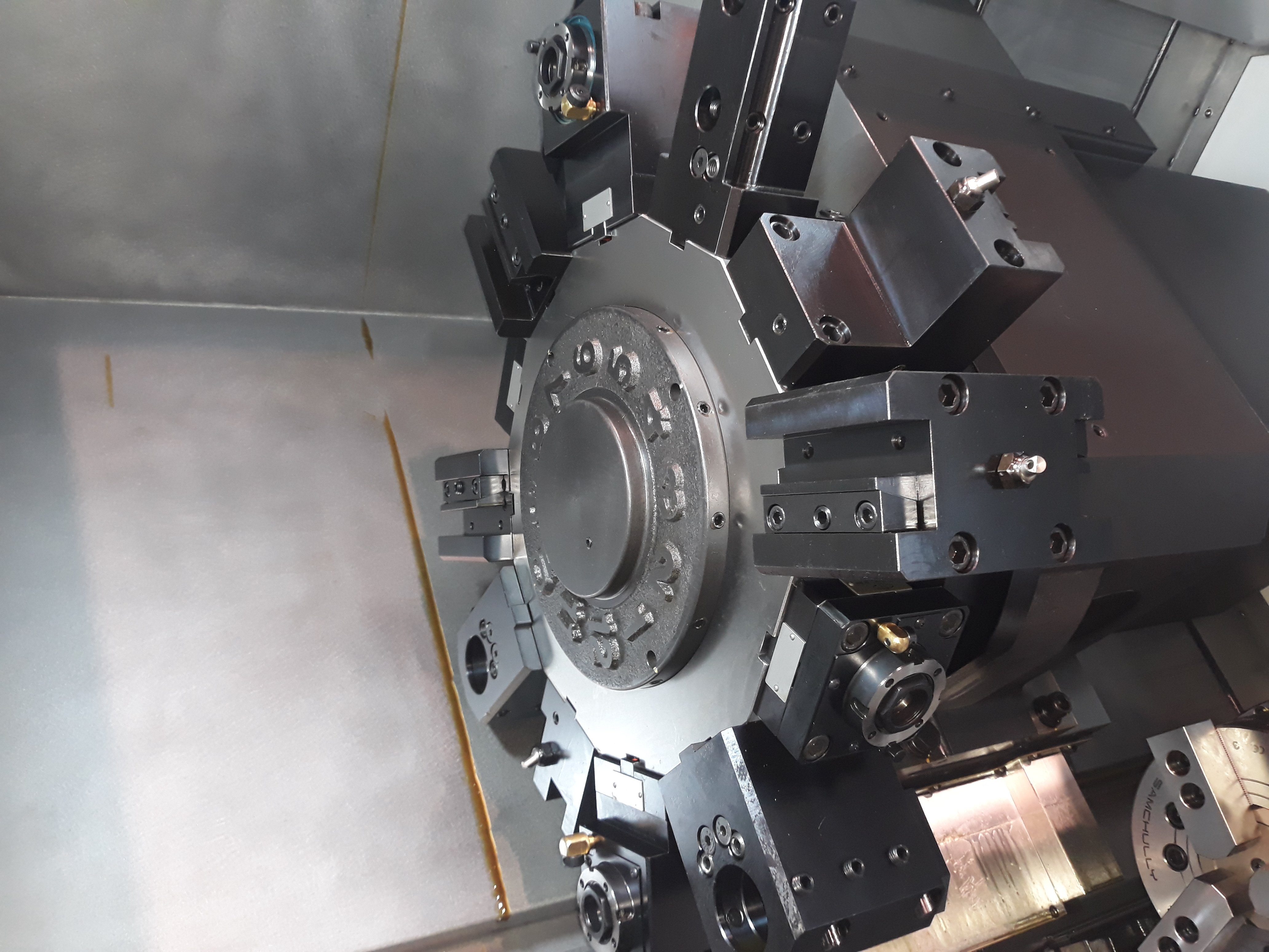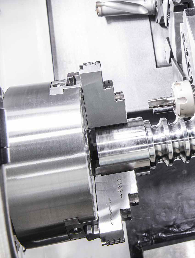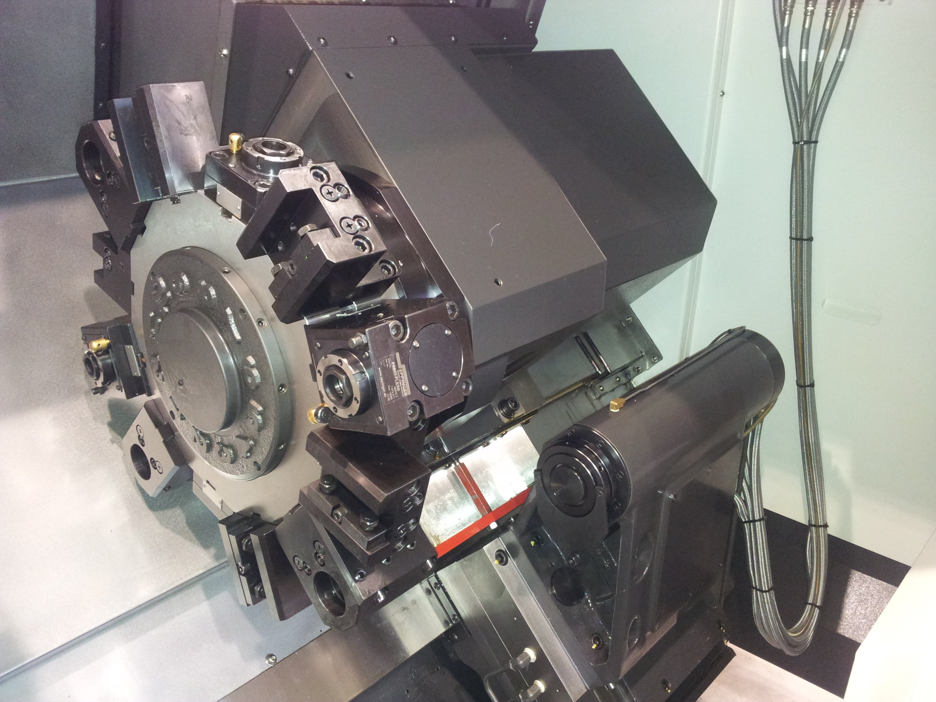 - Stroj tak bez problémů zvládne obrábět poháněnými nástroji i tvrdší materiály a provádět operace, které by jinak vyžadovaly samostatné frézovací centrum.