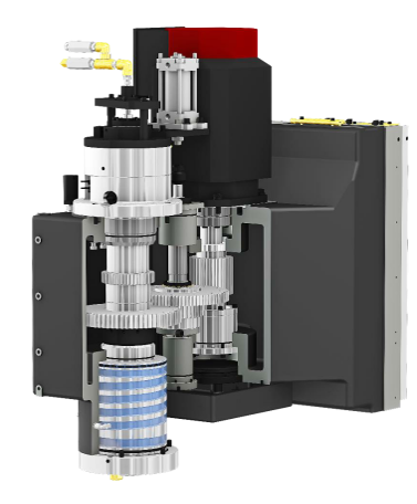 - Stroj využívá masivní litinový rám navržený s pomocí FEM, což umožňuje ideální rozložení hmoty, vysokou tuhost a dokonalé tlumení vibrací. Díky tomu je dosaženo dlouhodobé geometrické stability a vysoké přesnosti obrábění i při zatížení těžkými obrobky a silovém hrubování.