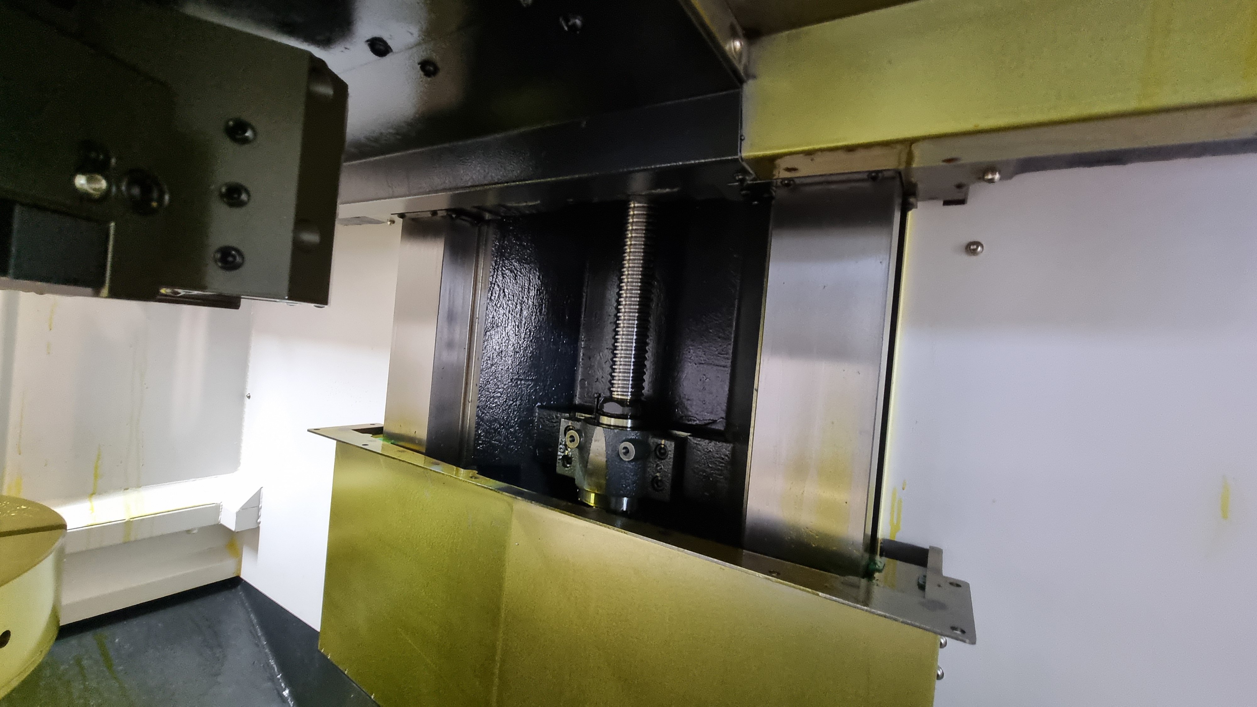 - Kluzné vedení os typu Box poskytuje vysokou nosnost, účinné tlumení vibrací a stabilní chod při náročných soustružnických operacích, což přispívá k dlouhé životnosti stroje i nástrojů.