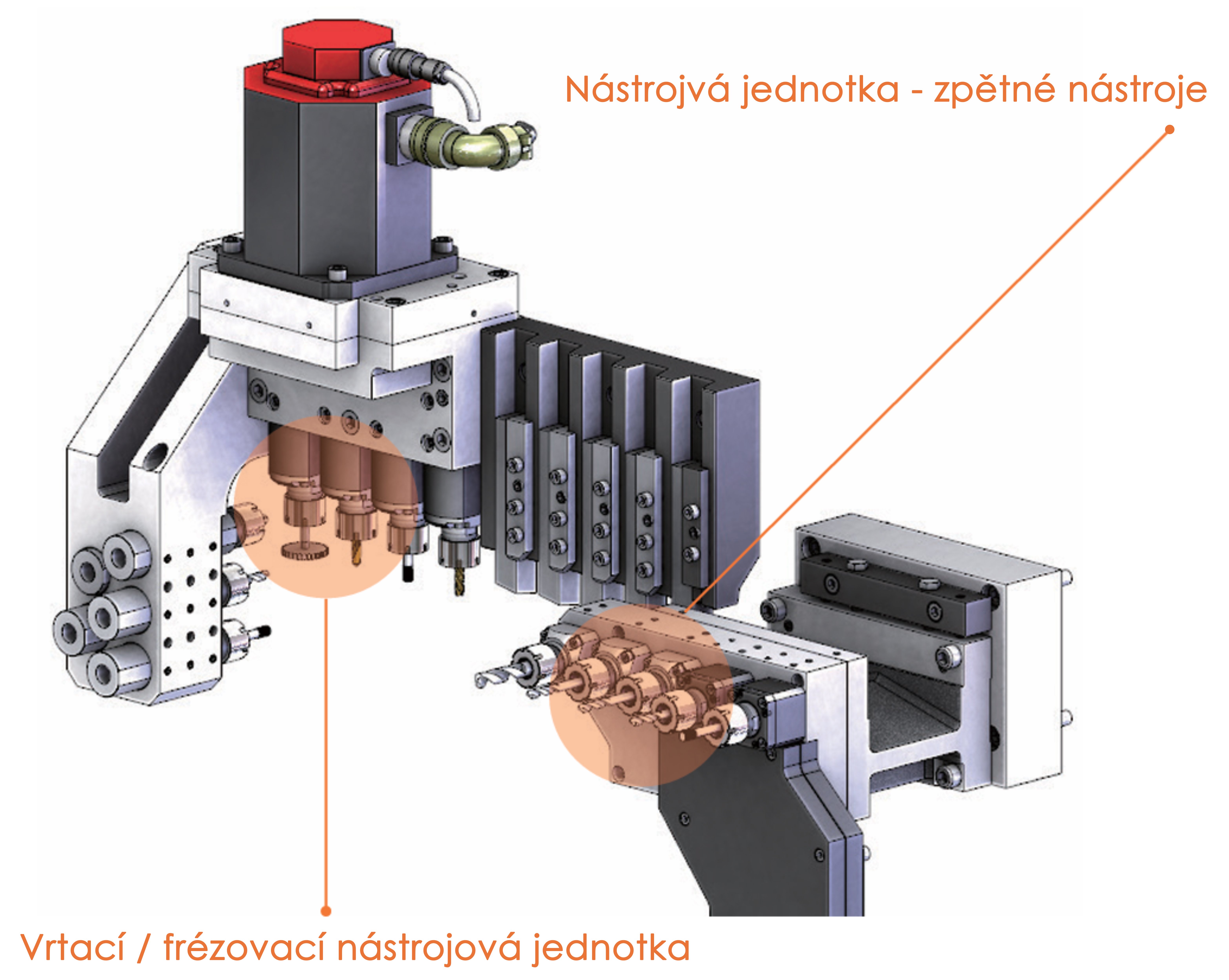 | Počet nástrojových pozic (zadní prac. jednotka) | 5 (3 hnané + 2 pevné, ER20) (ks) |